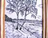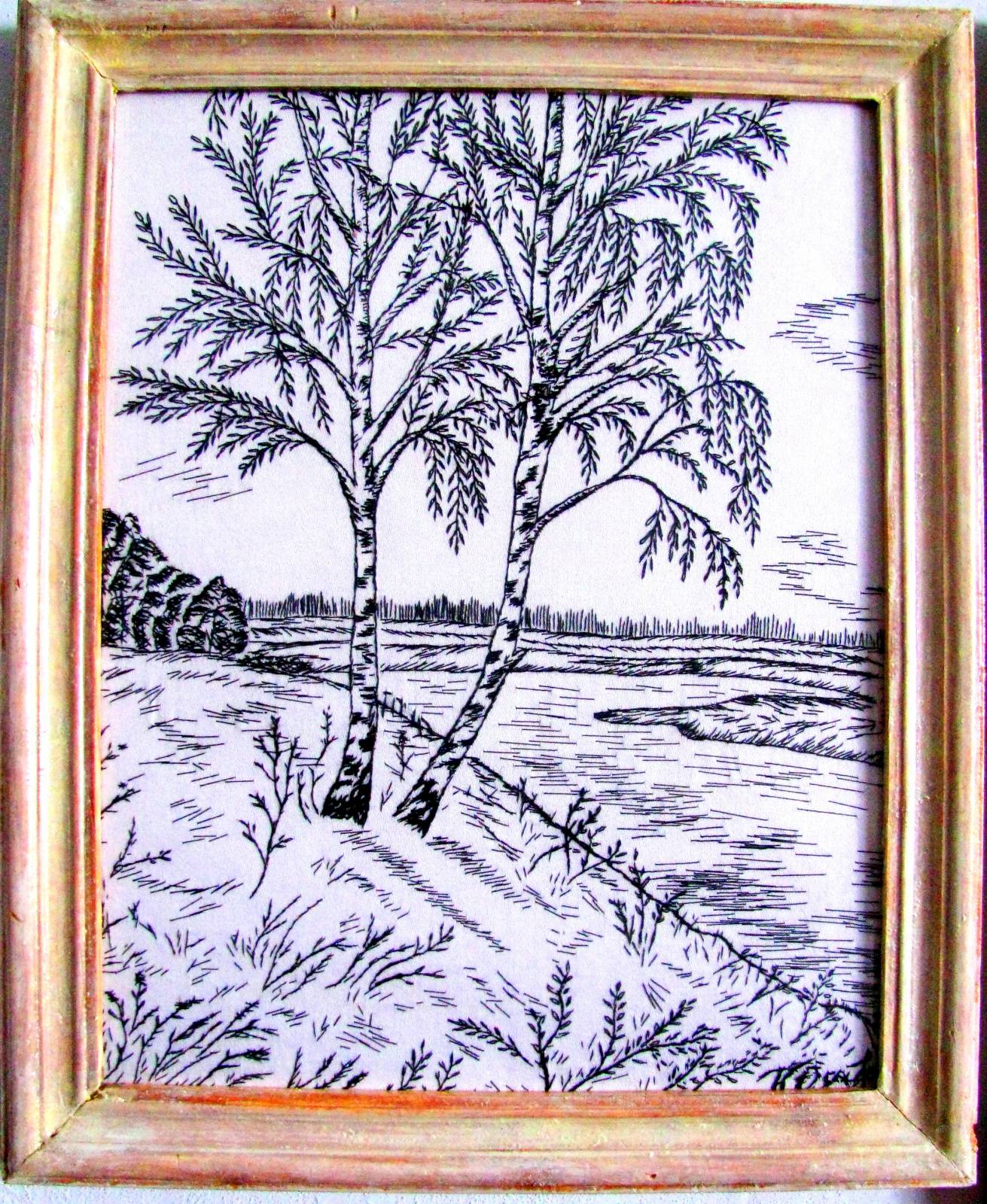 «Берёзы» графика ручная вышивка